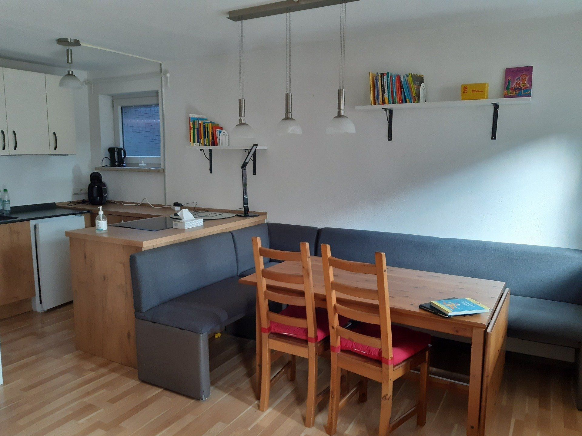 Meine Praxis besteht aus 2 Räumen zur Förderung, einem Bad und einem kleinen Flur. Im ersten Raum befindet sich eine Küche, in der man lebenspraktische Fähigkeiten einüben und festigen kann. Anschließend gibt es einen Tisch, an dem vor allem größere Kinder arbeiten, malen und basteln können. Es werden verschiedene Materialien unter anderem von Maria Montessori oder Mal- und Bastelutensilien angeboten, die den Kindern zur Verfügung stehen. Ebenso gibt es Bau- und Konstruktionsmaterial. Hier können die Kinder ihre Kreativität freien Lauf lassen.